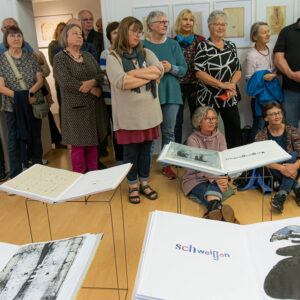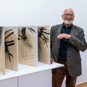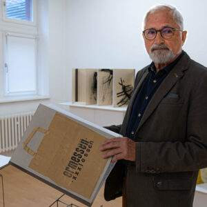 Parallel zur großen Kultursommerausstellung „Papier!“ zeigt Albrecht Rosenstiel im Studioraum seine gedankenreichen Kunstwerke: Bücher, Leporelli, Arbeiten mit und auf Papier. „Mit dem Papier ist das so eine Sache“, schreibt der Künstler. „Eine innere Unruhe treibt mich zum Papierschrank. Ich wühle darin, bis mir meist Gebrauchsspuren aufweisende Bögen auffallen. Hier und da werden auf ihnen Farbreste, Linienfragmente, Flecken und Risskanten sichtbar. Faltungen, Verklebungen, Aufdrucke animieren mich, die Blätter auf weiße Bögen zu legen. Allmählich beginnen sie ein Eigenleben zu entfalten. Ein ordnender Vorgang drängt sich auf. Eine Idee keimt und die Arbeit beginnt.“