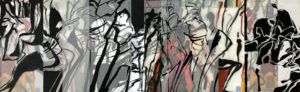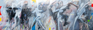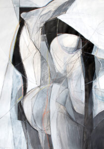 Figuren, Linien und Flächen, klar Erkennbares und Schemenhaftes agieren im Bildraum, entwickeln Beziehungen und zeigen sich den Betrachtenden offen für eigene Reflexionen und Begegnungen.