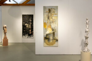 Zeichnungen, Malereien und Skulpturen stehen im Zentrum meiner Arbeit. Ich arbeite fast immer figürlich. Selbst sehr reduzierte Formen aus Stahl sind vom menschlichen Körper inspiriert, sei es eine Geste oder eine Bewegung. Räumliche Präsenz korrespondiert mit der räumlichen Illusion von Zeichnungen und Malerei.“